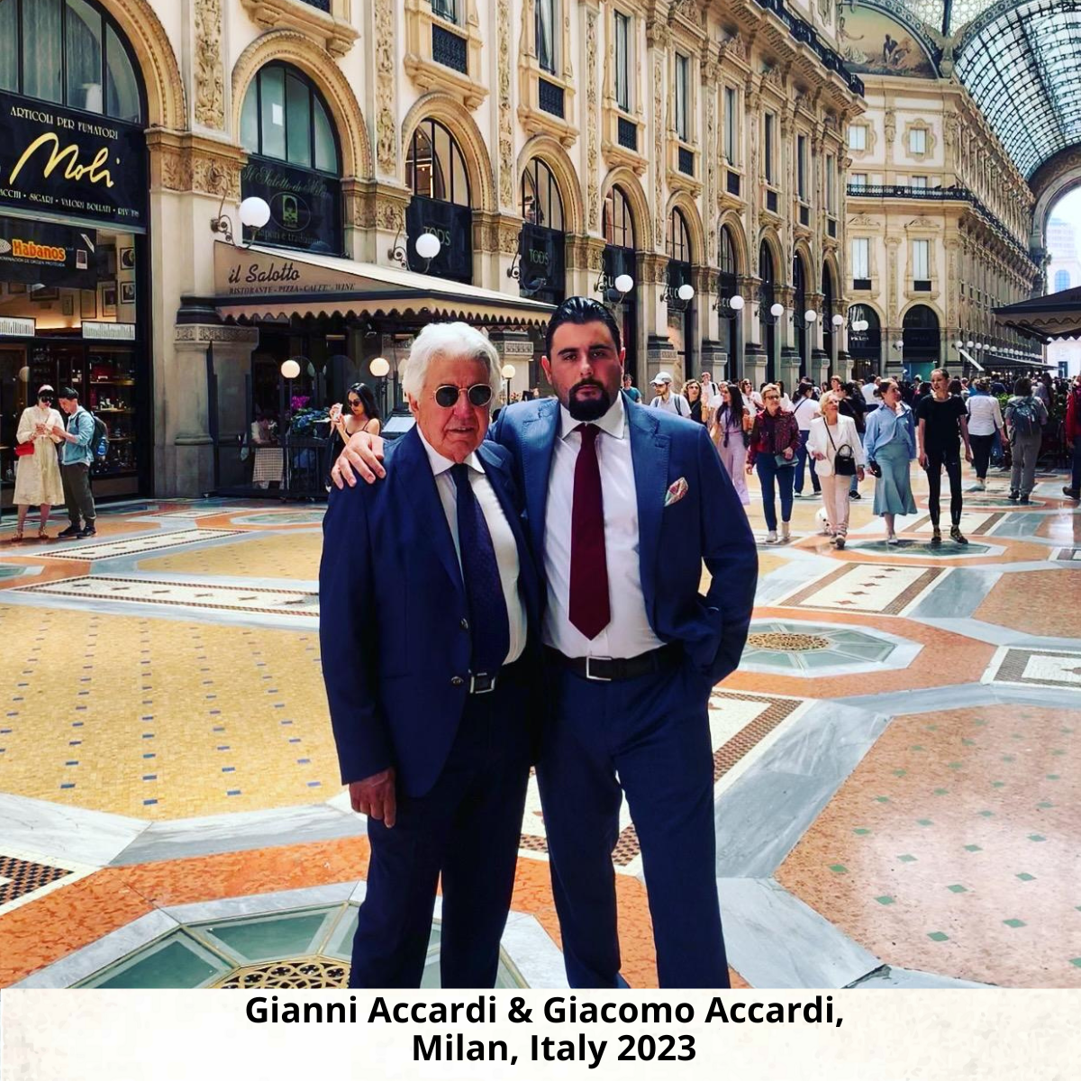 Inoltre, segnando una tappa significativa nella sua evoluzione, l'azienda passa da 'Forever' Sas a 'Gianni Accardi Srl', consolidando ulteriormente la sua crescita e la sua importanza nel settore della moda. In un capitolo significativo della storia del marchio, Gianni Accardi, dopo anni di essere pionieri e stabilire standard senza precedenti nel regno della moda, ha preso la decisione sincera di passare il testimone alla generazione successiva. Suo figlio Giacomo, intriso della stessa passione per la moda e per l'eredità del nome Accardi, assunse la guida dell'azienda. Questa transizione non è stata solo un cambiamento nella gestione; simboleggiava una fusione dei principi senza tempo di Gianni con la visione contemporanea di Giacomo. Quando Giacomo è entrato nei panni di suo padre, ha portato con sé nuove prospettive, idee innovative e un rinnovato impegno per elevare ulteriormente il marchio. Questo passaggio epocale ha segnato sia la fine che un nuovo inizio, promettendo un futuro in cui tradizione e innovazione si fondono, assicurando che l’eredità di Gianni Accardi continui a prosperare e ispirare nel mondo dell’alta moda.